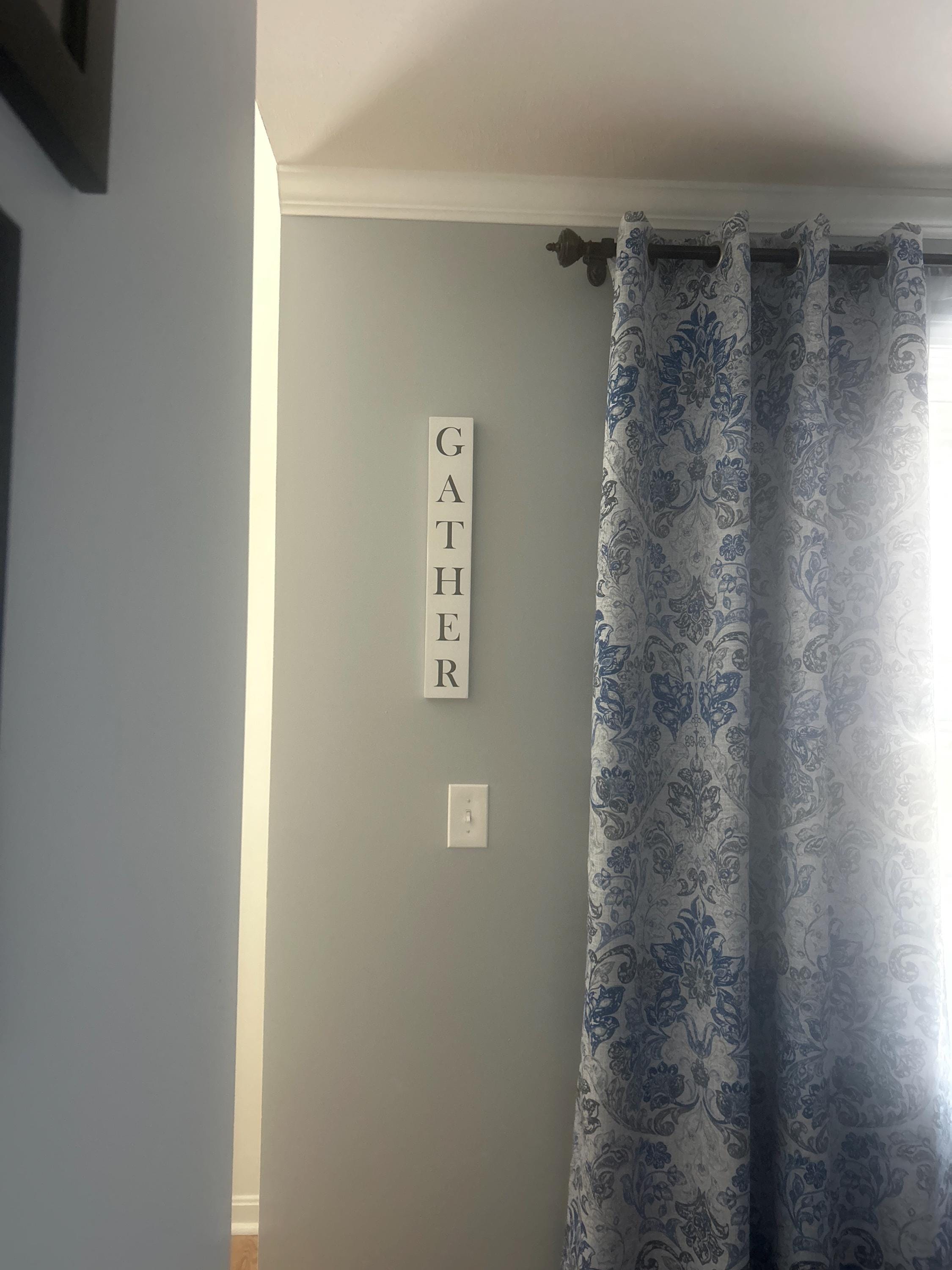 This listing offers a custom word, town, or name sign painted vertically on wood. The width of the sign is 3.5” and the length depends on the letter count. Refer to the second photo for length sample measurements by letter count.